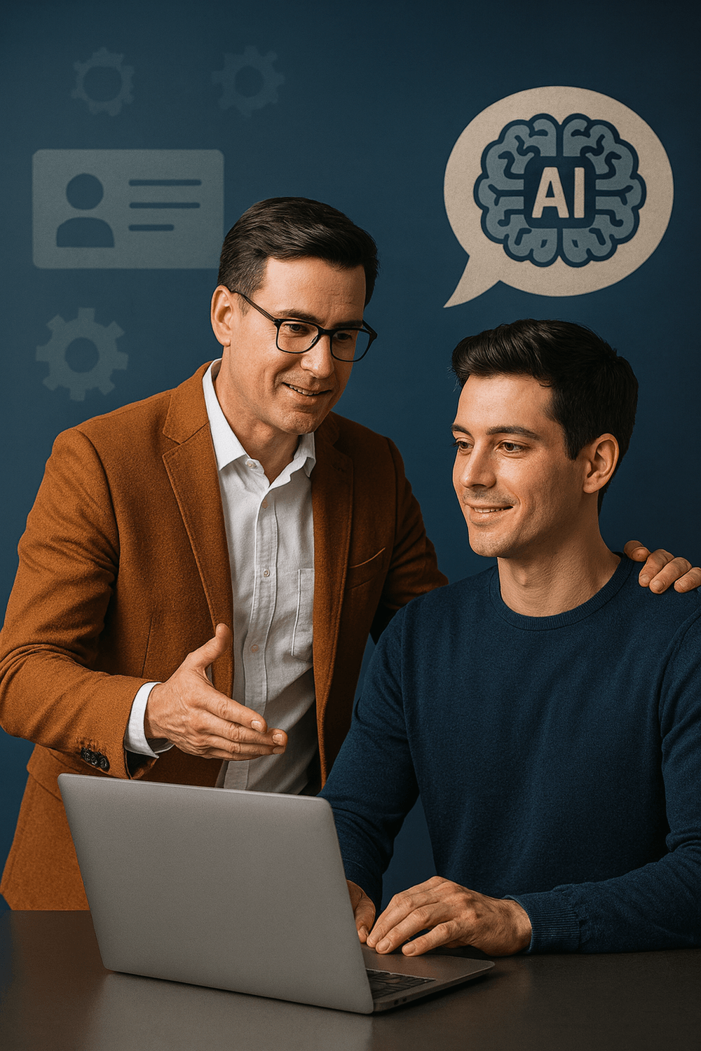 AI-mentorointi tarkoittaa asiantuntijan tarjoamaa jatkuvaa ohjausta siitä, miten tekoälyä käytetään tehokkaasti käytännön työssä: