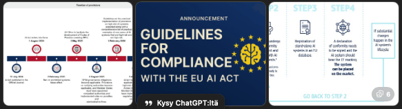 Yrityksesi kannalta tämä tarkoittaa: kun kehität AI-ratkaisuja, kannattaa viestiä että “emme ole vain teknologiaa tekeviä, vaan myös regulaation ja eettisten vaatimusten edelläkävijöitä”.